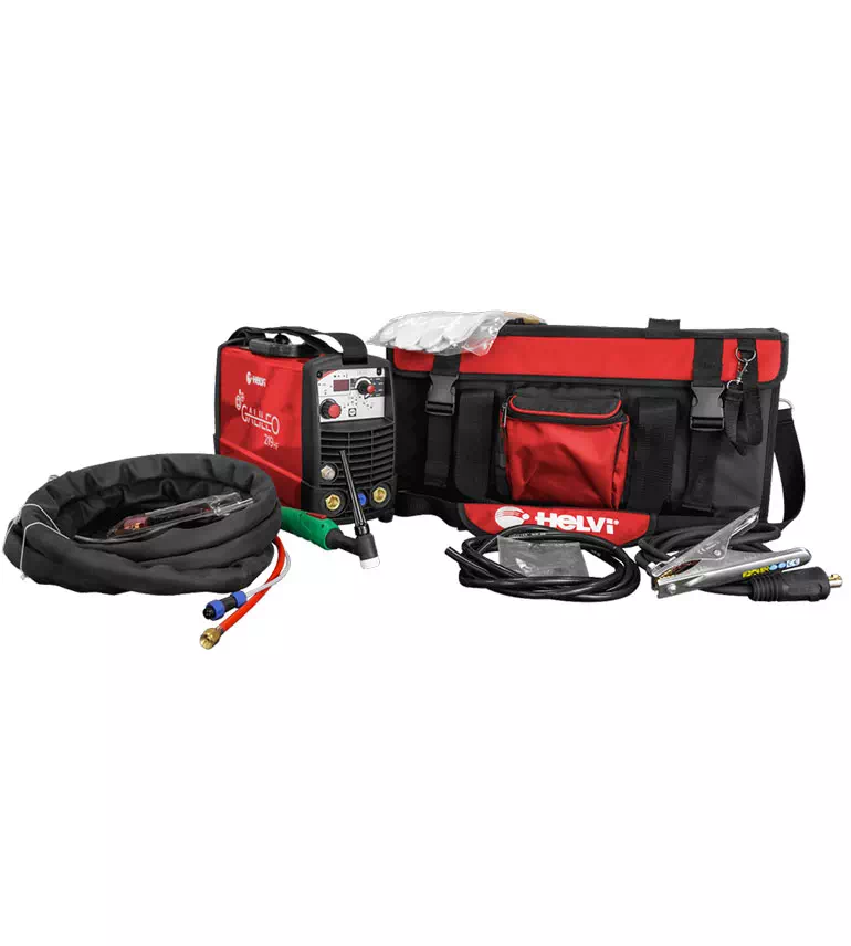 ACCESSORI INCLUSI: KIT TUBO GAS, BORSA HELVI XL PORTA SALDATRICE, TORCIA TIG EUROTIG 26 , CAVO DI MASSA CON PINZA